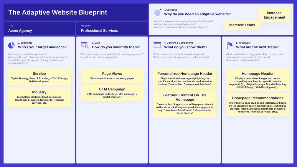 If you want to dive deeper into what an adaptive website blueprint is and learn how to create one for your own site, check out our Complete Guide to Creating Adaptive Websites.