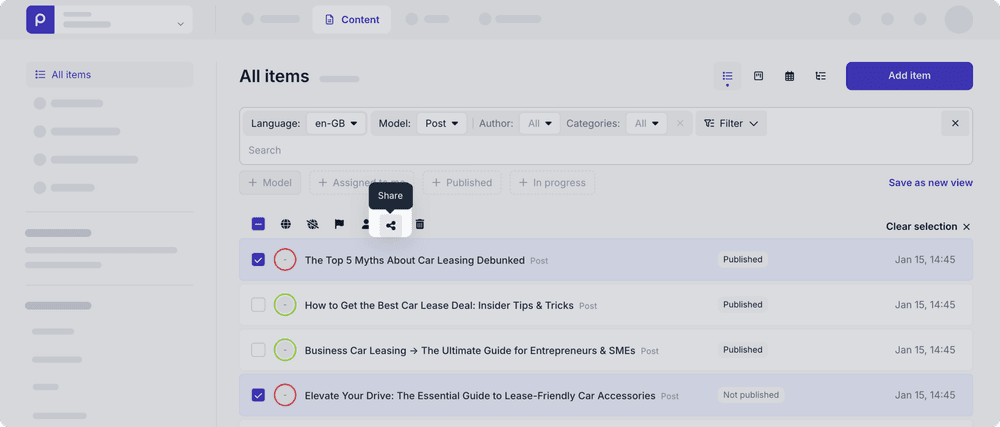 As teams grow and collaboration extends beyond the organization, access needs to become more specific. A common example is a freelance translator who is brought in to work on a single article. They need access to that content and to a particular version of language, but not to drafts in other markets, unrelated content, or publishing controls.