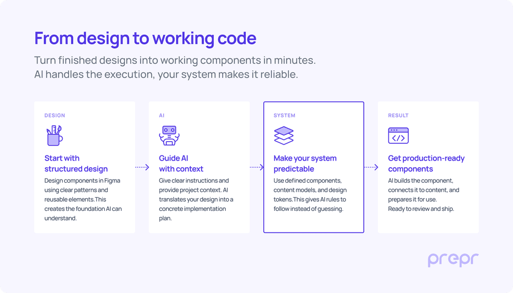 Because we were working with repeatable components inside a structured system, we had the right conditions to test whether AI could generate usable code, not just prototypes.