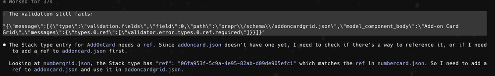 That included generating the schema, building the component, wiring it into the block system, and validating the result.