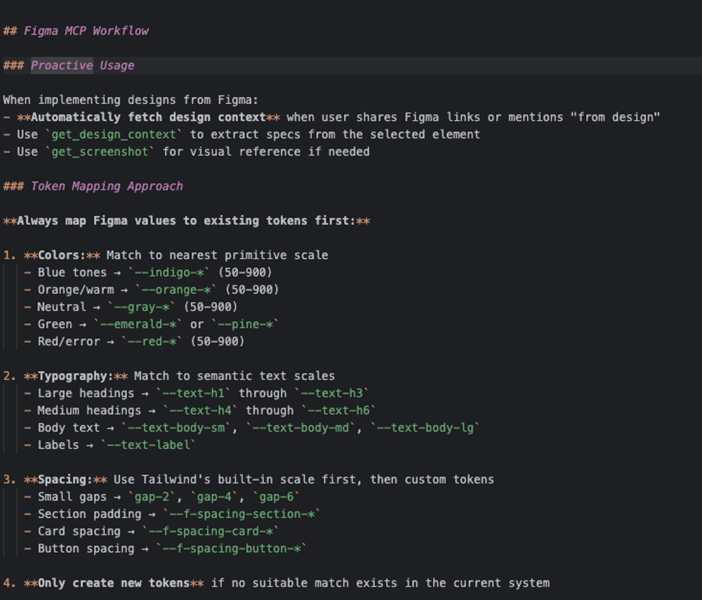 This became especially important because we were not only generating front-end components. We were also asking AI to help generate schema, which only works reliably when the rules around schema structure and conventions are clearly defined.