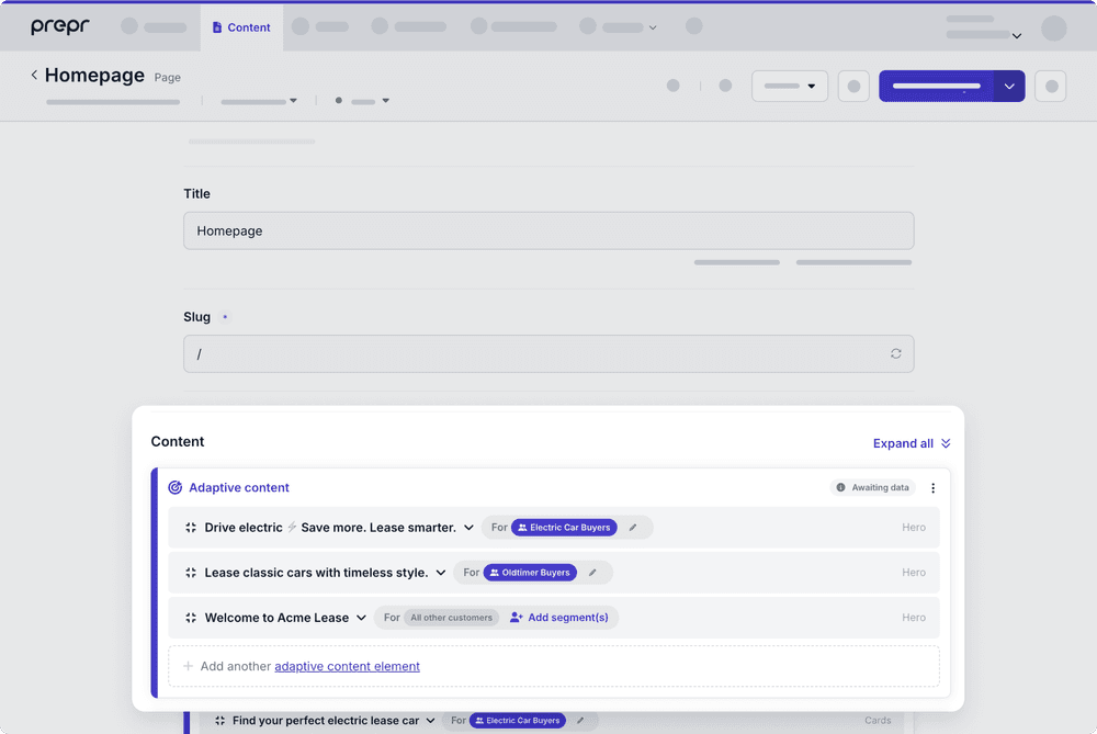 Prepr was built as a data-driven headless CMS that helps teams move beyond static websites and deliver personalized, conversion-focused experiences. And with Prepr, you don’t need heavy external tools or complex integrations to make it work. Personalization is built in, so you can start small, scale fast, and see measurable results.