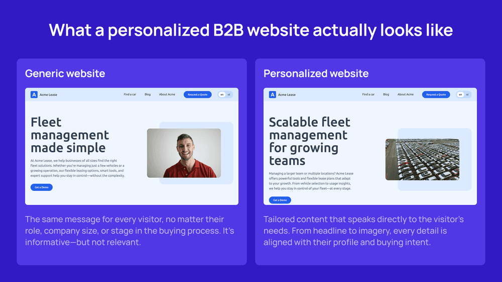 Personalization solves this by dynamically adapting your website's content—showing relevant case studies, product recommendations, and calls to action—which significantly increases engagement and conversions.