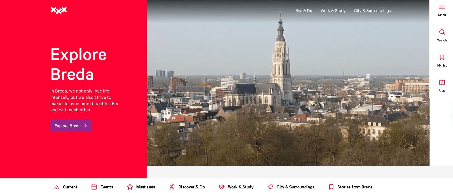 Traditional city platforms often segment audiences into rigid, separate landing pages, but Explore Breda wanted to break away from that outdated model. Someone could be an entrepreneur who lives in Breda, studies part-time, and enjoys going out in the city. Explore Breda wanted to reflect that real, layered experience of city life.