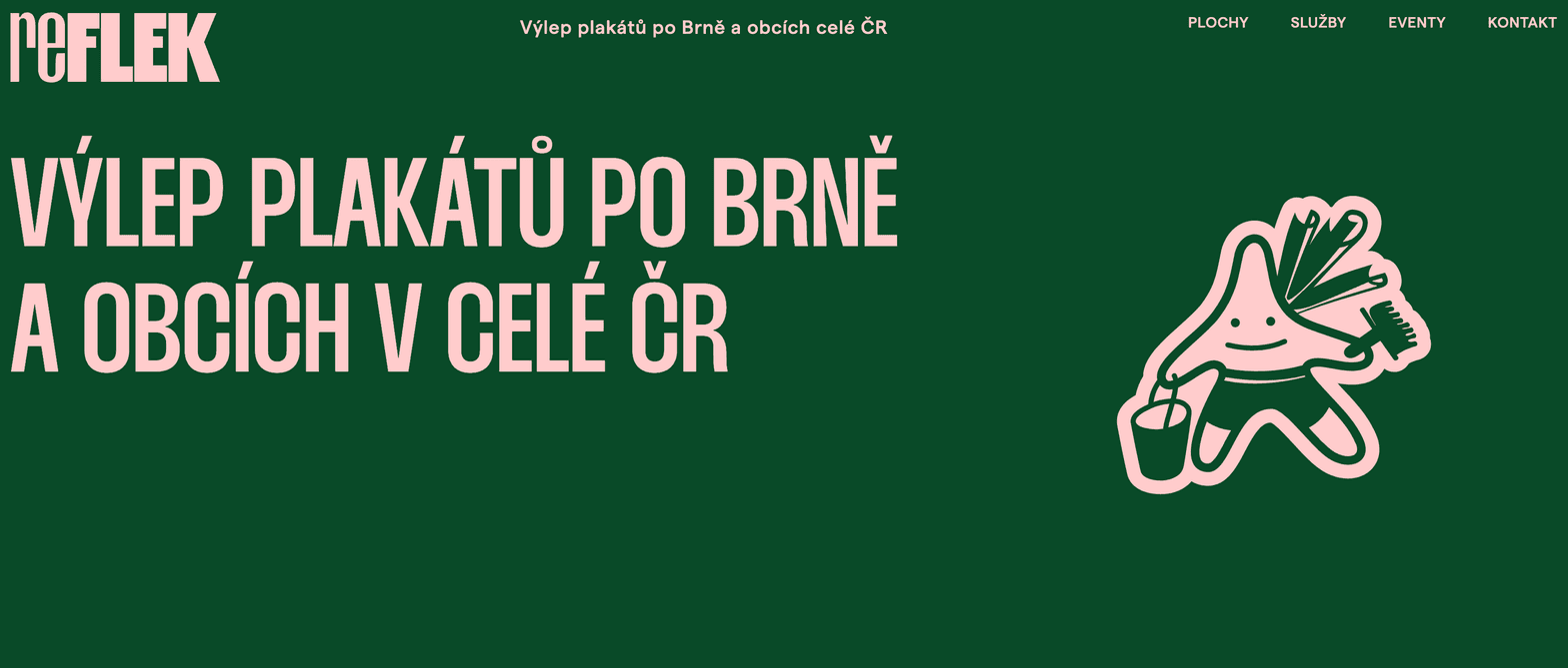 Reflek is a company based in Brno, Czech Republic, specializing in outdoor advertising and poster decoration. They offer advertising spaces on various urban surfaces, particularly posters and billboards throughout the city. Known for their flexibility and client-focused approach, Reflek ensures smooth communication and promotion processes. The company takes pride in contributing to the success of cultural events in Brno, believing these events play a crucial role in city life. Reflek's ultimate satisfaction comes from seeing people enjoy the events they help promote.