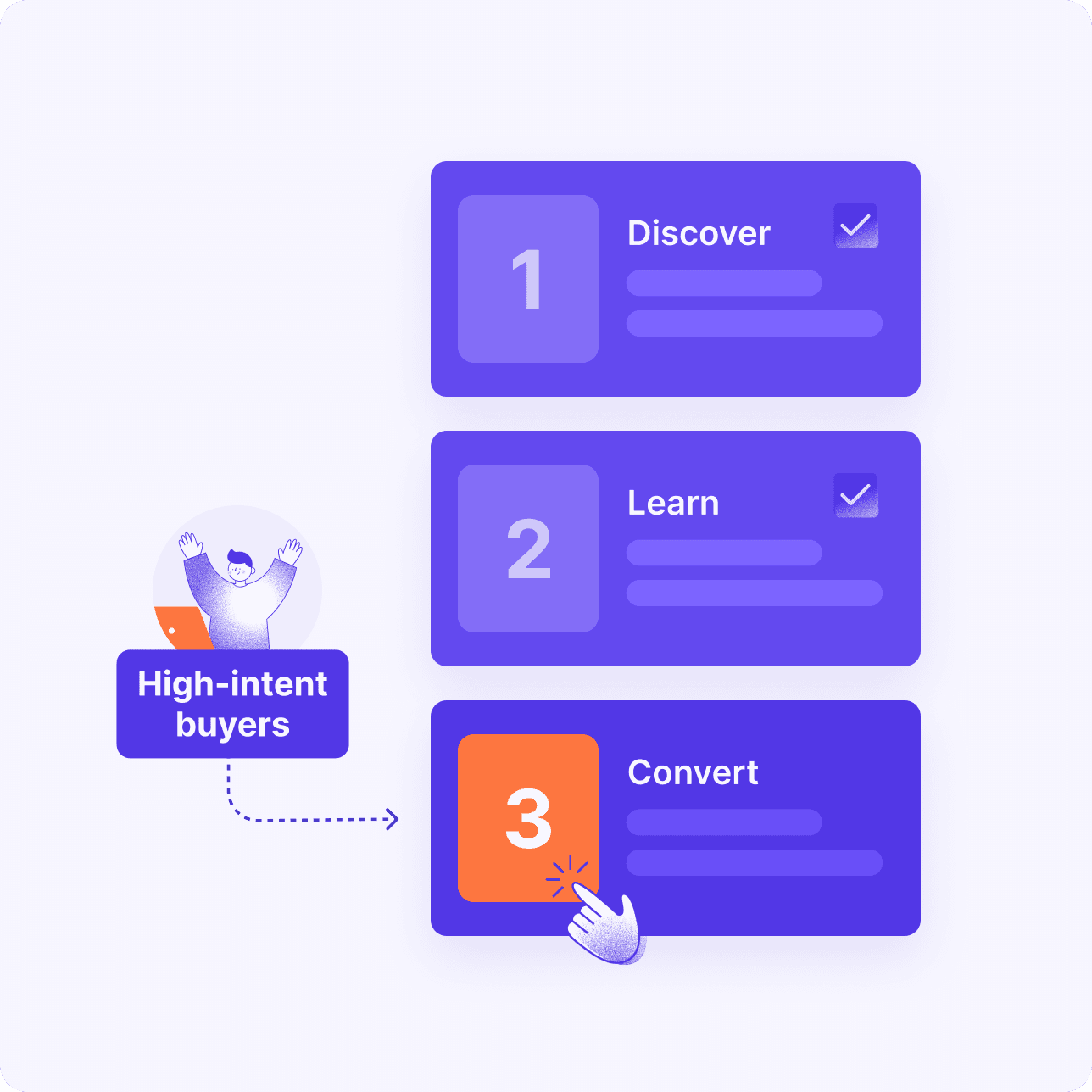 Prepr helps you adapt your site to each stage of the buying journey — so early visitors get discovery content, researchers see the proof they need, and high-intent buyers get the right CTA at the right time.